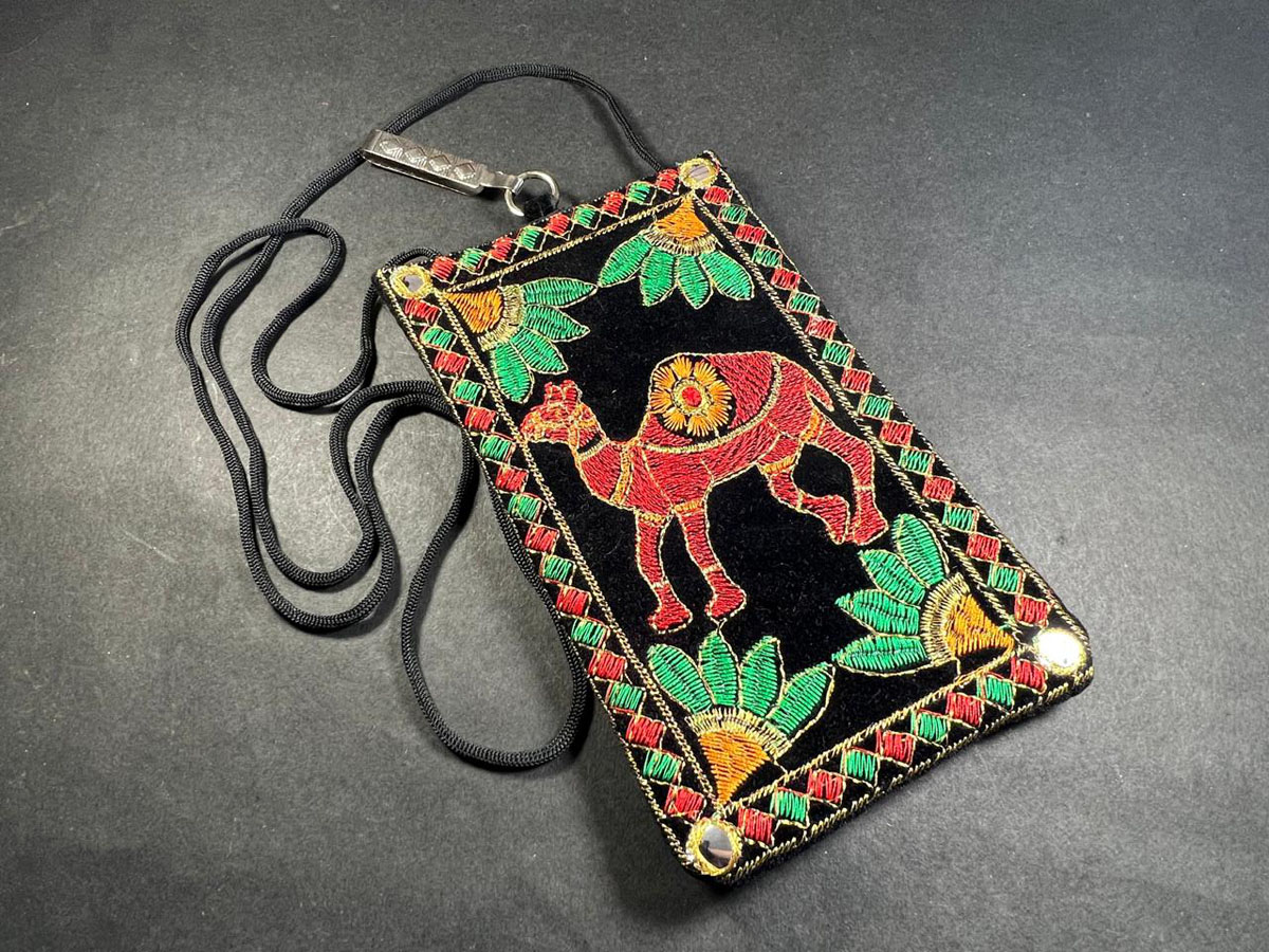 - Handmade Rajasthani Camel Embroidered Mobile Pouch Boho Sling Bag with Zipper India - B41