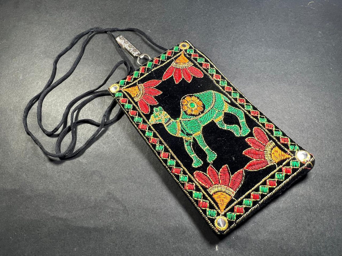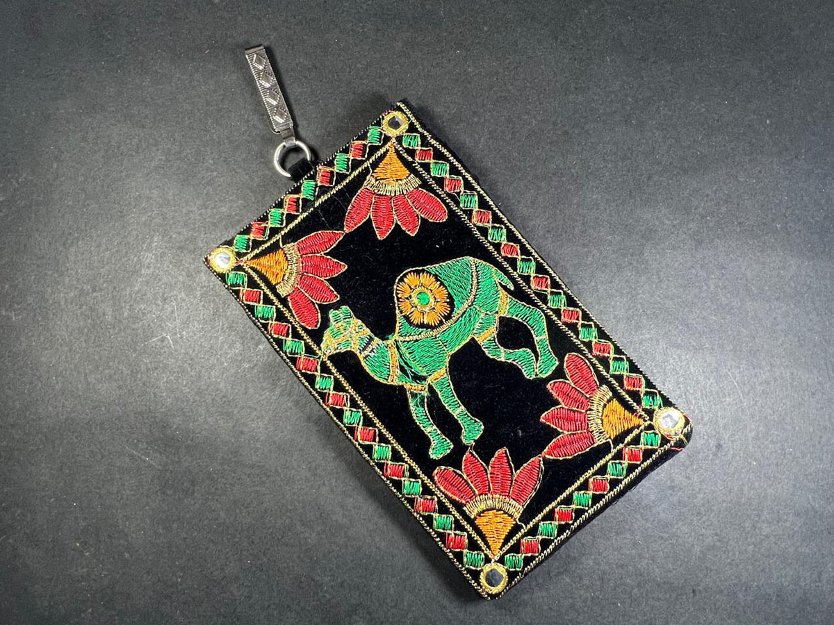 - Handmade Rajasthani Camel Embroidered Mobile Pouch Boho Sling Bag with Zipper India - B40