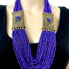 Embrace the vibrant and eclectic spirit of tribal design with this Tibetan Gypsy-inspired necklace. This statement piece features a striking combination of resin and metal beads, arranged in a bold two-strand collar style that elegantly frames the neckline.